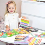 Libérez l'imagination des enfants avec le set créatif Woopie ART&FUN, qui combine amusement et apprentissage. Cette activité est une excellente façon pour les enfants d'apprendre à reconnaître les formes et couleurs en collant des autocollants géométriques sur des images. Le set contient 504 éléments, dont 503 autocollants et deux pages avec différentes activités.
