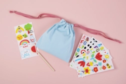 petit sac en tissu, applicateur en bois, 5 planches d’autocollants (109+ pcs)