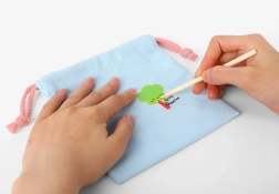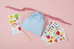 Les enfants peuvent concevoir leur propre sac à l’aide d’autocollants colorés et développer leur créativité.