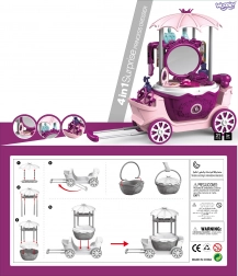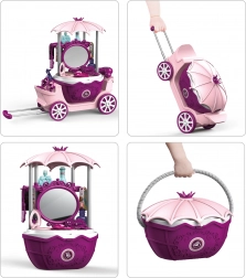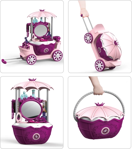 Cette coiffeuse rose et violette pour enfants se plie facilement en une valise pratique avec poignée télescopique et roulettes – idéale à la maison comme en voyage. Les enfants peuvent ouvrir leur propre studio de maquillage portable, coiffer, maquiller et s’occuper des « clients » selon leur imagination.