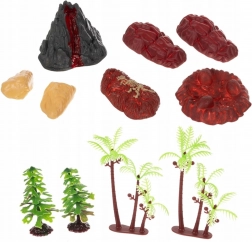 Un ensemble varié de dinosaures, d’arbres, de rochers et de lave permet de créer des scènes détaillées et d’apprendre les noms des espèces de manière ludique.
