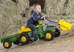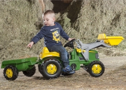 Tracteur à pédales JOHN DEERE RollyKid avec godet avant et remorque – vert