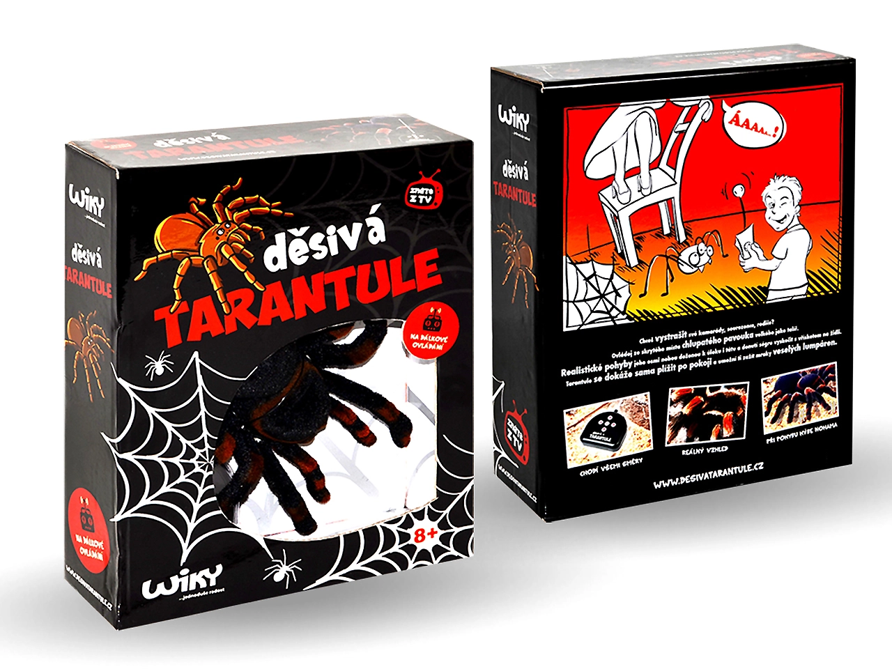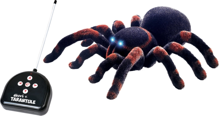 Faites peur à vos amis et frères et sœurs avec une tarentule RC réaliste fonctionnant sur la fréquence 27 MHz. Cette araignée poilue de 22 cm se déplace comme une vraie grâce à ses huit pattes, et ses yeux lumineux créent une ambiance vraiment terrifiante.