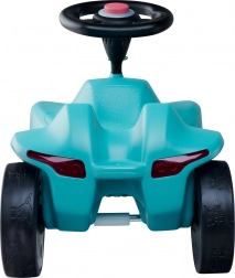 La voiture à chevaucher présente un look moderne et futuriste en turquoise et est fabriquée en plastique résistant pour une utilisation durable.