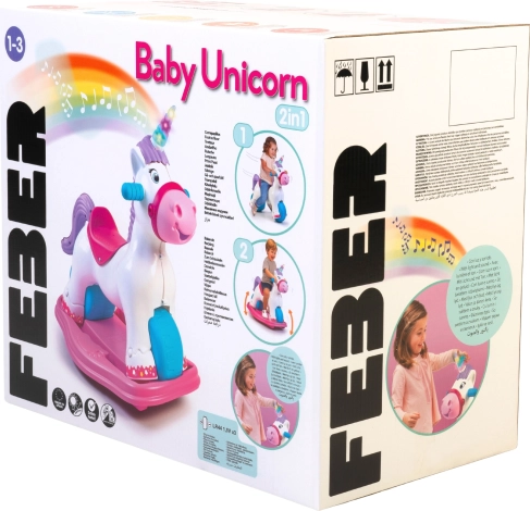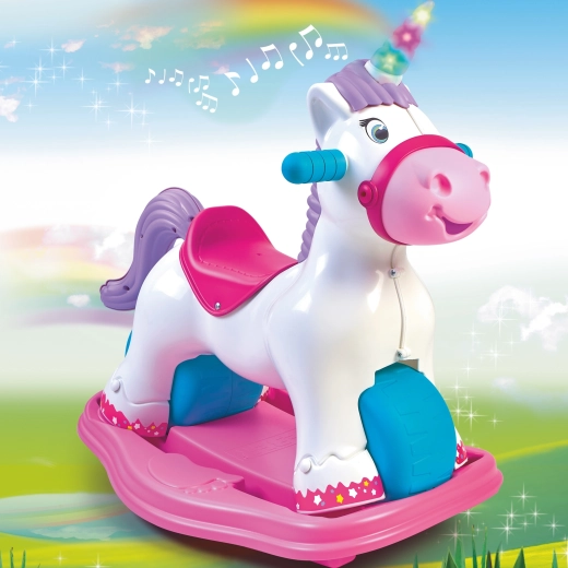 FEBER licorne à bascule interactive 2-en-1 – porteur pour enfants avec lumières et sons