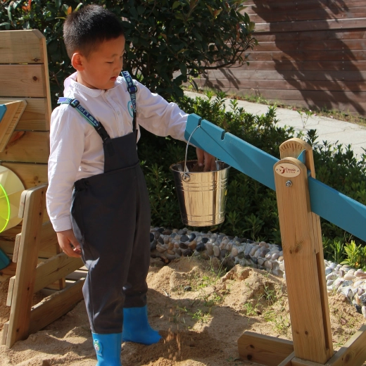 Cette balance d’équilibre pour bac à sable offre aux enfants une infinité de découvertes et de jeux par l’essai–erreur. Ils remplissent les seaux en métal de matériaux variés et observent comment l’équilibre change – cela favorise la compréhension des bases de la physique, la réflexion logique et la patience.