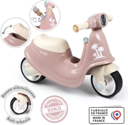 Scooter rose de la marque réputée Smoby est un adorable véhicule rétro à deux roues, idéal pour les jeunes enfants. C'est un jouet de développement qui soutient l'équilibre, la force et la condition physique de l'enfant.
