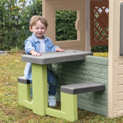 La table de pique-nique avec bancs est l’accessoire idéal pour les maisons de jeux pour enfants telles que Neo Jura Lodge, My New House, Chef House et Evo Friends House. Elle est conçue pour offrir aux enfants un espace confortable pour jouer et se reposer.