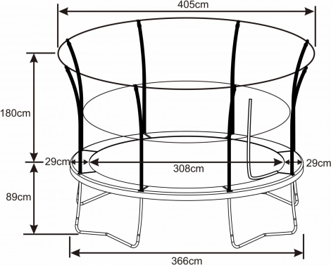Le filet de protection entoure entièrement le trampoline et, grâce à la fermeture éclair, permet une entrée et une sortie faciles tout en empêchant de tomber pendant les jeux et l’entraînement aux figures.