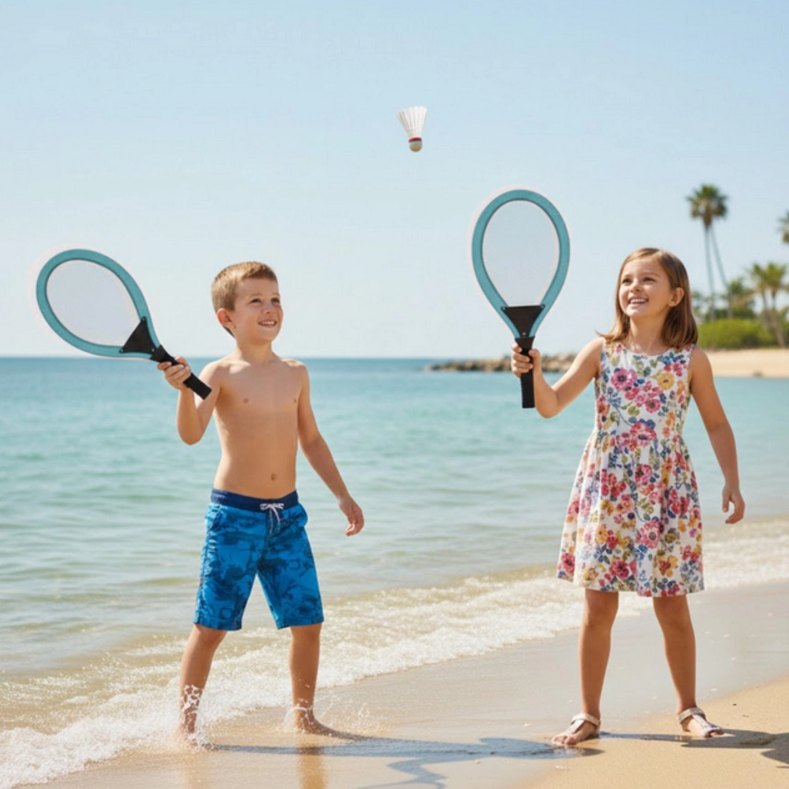 Idéal pour la plage, le jardin et le terrain de jeux. Le set renforce la coordination œil–main, développe la motricité globale et favorise des moments actifs partagés.