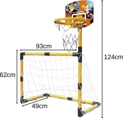 Avec ce set multifonction, les enfants entraînent leur coordination, leur précision et l’esprit d’équipe. L’emballage complet comprend un panier de basket, une cage de football, des ballons et une pompe – il suffit de déballer et de jouer. Grâce à sa structure solide et stable, le set convient à l’intérieur comme à l’extérieur et offre une faible nuisance sonore à l’usage.