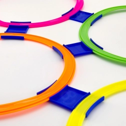 Contient 10 cerceaux connectables, qui peuvent être assemblés librement en différentes configurations pour le jeu Escola.