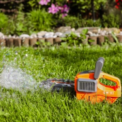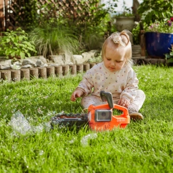 La scie à bulles ludique en forme de scie de la marque WOOPIE transforme chaque après-midi au jardin en un show rempli de bulles. Grâce à la « lame » amovible, vous changez rapidement l’apparence en un élégant générateur de bulles, tandis que le soufflage automatique, les effets lumineux et la rotation de la sortie à 360° créent un spectacle visuel saisissant. Le coffret comprend 2 flacons de solution ; le jouet est léger, portable et idéal pour les enfants dès 3 ans.