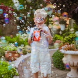 La sortie rotative avec éclairage LED tourne à 360° et génère un flux de bulles dans différentes directions. Les enfants bougent davantage, entraînent leur coordination et s’amusent énormément. Le coffret comprend deux flacons de solution, pour commencer tout de suite après avoir inséré les piles.