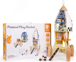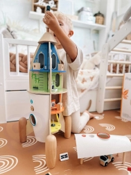 Cette fusée détaillée renferme jusqu’à 12 pièces thématiques (p. ex. soute, salle d’opération ou laboratoire) qui invitent les enfants au jeu libre et à la narration d’histoires. Grâce aux sections amovibles et aux pièces interactives, les enfants apprennent la logique, la patience et la coopération.