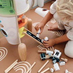 Le jouet est fabriqué principalement en bois, complété par un plastique de qualité et fini avec un vernis non toxique. Il est résistant, esthétique et conçu pour un jeu durable dans la chambre d’enfant. Il favorise l’imagination, la créativité et la motricité fine.