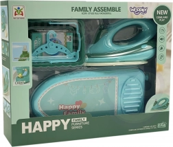 Avec ce set de jeu Happy Family, les enfants endossent le rôle de petits assistants à la maison. Le jouet inclut des fonctions variées comme la pulvérisation d’eau et des effets lumineux. Le set comprend aussi une mini planche à repasser et d’autres accessoires, qui encouragent les enfants au jeu imaginatif.