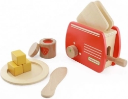 - Contenu du set : grille-pain avec levier mobile et bouton, deux tranches de « pain » en bois.