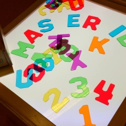 Découvrez la magie de l’apprentissage avec un ensemble coloré et translucide de lettres et de chiffres ! Un outil exceptionnel pour les enfants qui apprennent l’alphabet et les bases des maths de façon ludique. Une boîte en bois pratique facilite le rangement des composants.