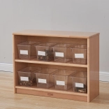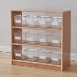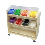 Les boîtes sont compatibles avec l’étagère spéciale MASTERKIDZ (ME13095), qui peut accueillir jusqu’à 12 récipients et permet un rangement clair sur les étagères ou le déplacement de l’ensemble sur un chariot. L’absence de couvercles facilite la manipulation autonome par les enfants et accélère le rangement comme la préparation de la prochaine activité.