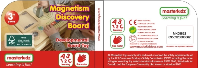Convient aux coins à la maison, aux écoles maternelles et aux aires de jeux pour enfants. La qualité MASTERKIDZ garantit durabilité et sécurité. Le tableau s’intègre naturellement dans un environnement Montessori : les enfants découvrent les principes du magnétisme de manière autonome, par des expériences pratiques et l’exploration sensorielle.