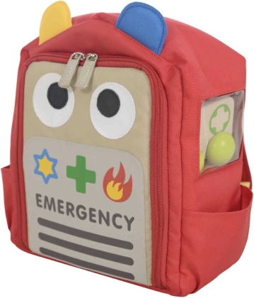 En quelques secondes, le sac à dos devient un véritable centre de secours – les enfants passent facilement des rôles de policier, pompier et médecin.