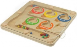 Des zones colorées clairement marquées et des billes en cinq couleurs guident naturellement les enfants vers la reconnaissance et le tri des couleurs.