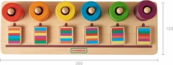 - 30 anneaux colorés (6 séries de 5 pièces), base en bois avec chevilles