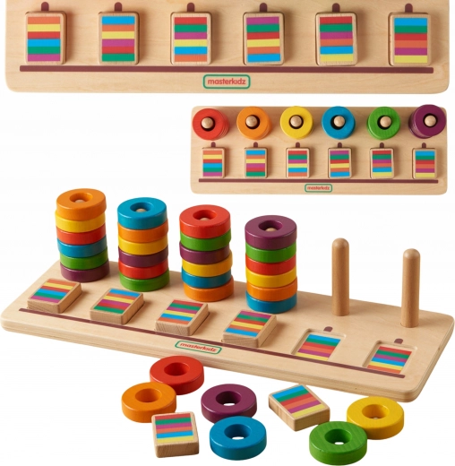 Le trieur éducatif en bois MASTERKIDZ est l’outil idéal pour les enfants dès 2 ans. Il favorise le développement de la motricité fine, l’apprentissage des couleurs, le tri et le classement par ordre. Grâce aux 30 anneaux colorés inclus, les enfants peuvent compter, composer des séquences et renforcer leur pensée logique de manière ludique.