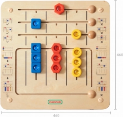 - Tri des formes et des couleurs, labyrinthe coulissant, missions sur la réglette supérieure