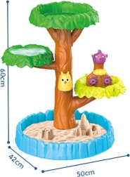 Table d'eau en forme d'arbre de la marque Woopie est idéale pour jouer avec l'eau et le sable. Cet ensemble contient tout ce qu'il faut pour un divertissement infini - table pliable, seau, verseur, trois moules, deux pelles, arrosoir. Un enfant peut arroser avec de l'eau divers animaux, ce qui fait que les roues dentées commencent à tourner, ajoutant encore plus de plaisir à un jeu déjà formidable.