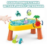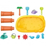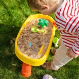 Le pack comprend 8 accessoires pratiques – moules, petit poisson, arrosoir, gobelet avec anse, râteau et pelle – qui encouragent la créativité, la motricité fine et la coopération entre enfants. La table est légère, facile à assembler et à nettoyer, parfaite pour le jeu quotidien à l’intérieur comme à l’extérieur.