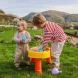 La table d’eau et de sable WOOPIE est idéale pour des expériences sensorielles avec l’eau et le sable. Grâce à sa construction stable et à ses accessoires colorés, les enfants profiteront d’heures de jeu au jardin, sur le balcon ou dans la chambre. La barre à roue pirate ajoute une dimension narrative et stimule l’imagination.