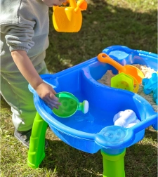 Découvrez le plaisir de jouer avec l’eau et le sable grâce à la table WOOPIE 2-en-1. Deux compartiments indépendants permettent aux enfants de verser de l’eau dans l’un et du sable dans l’autre, pour puise r, transvaser, tamiser et modeler sans désordre autour.