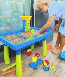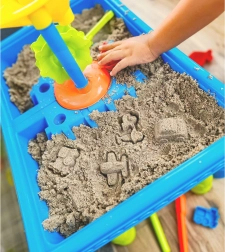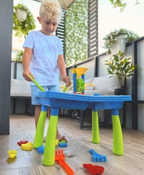 Avec ses deux compartiments, la table permet de jouer simultanément avec de l'eau et du sable, offrant ainsi une variété d'activités ludiques.