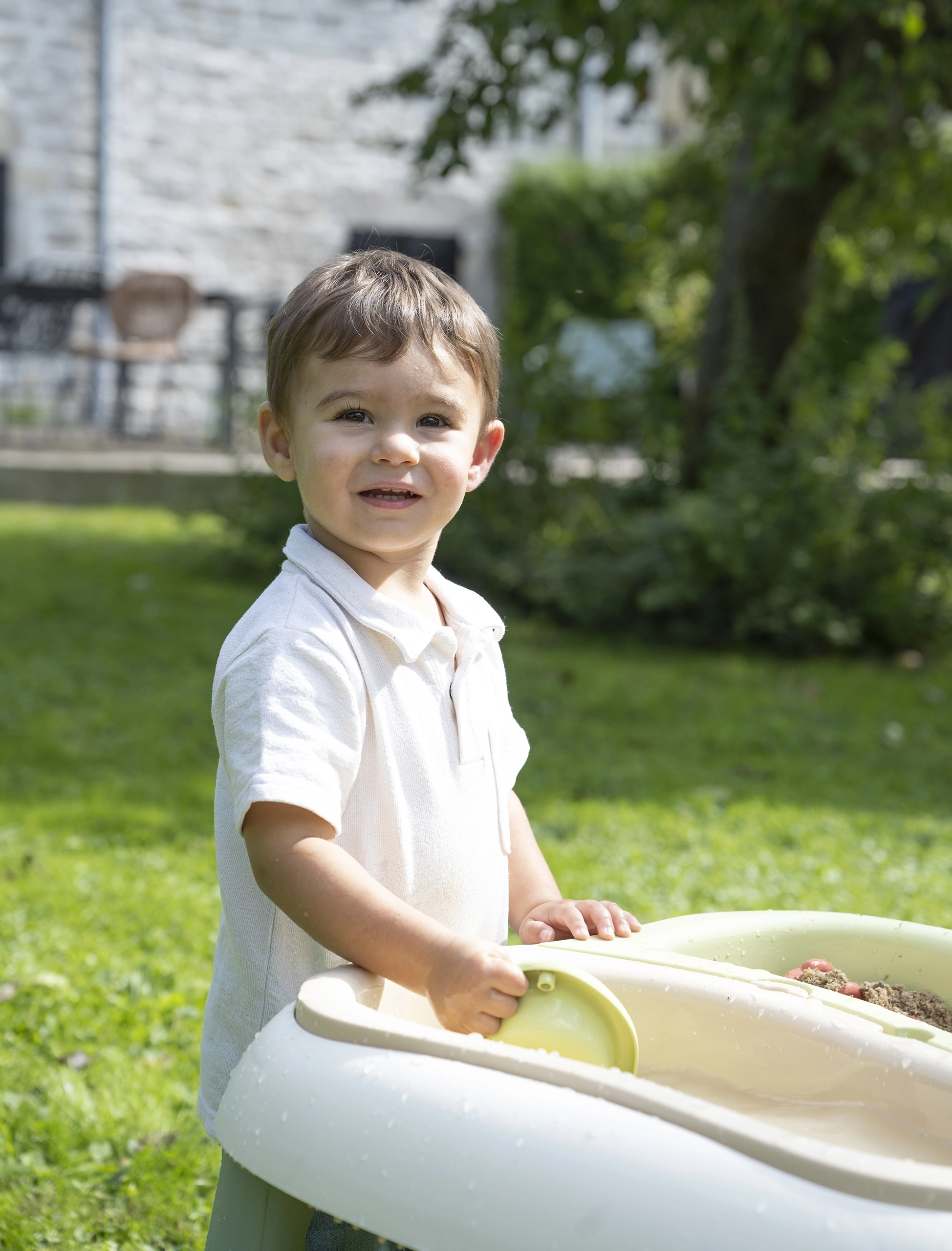 - Double amusement – deux bacs amovibles permettant de jouer en même temps avec l’eau et le sable