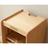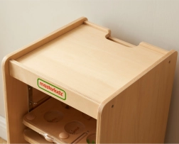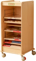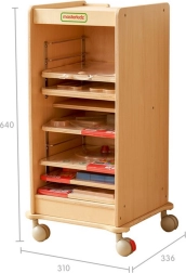 Équipée de roulettes avec blocage, l’armoire se déplace facilement entre les classes ou les espaces, puis reste stable une fois freinée. Le plateau supérieur sert de surface pratique pour utiliser un panneau immédiatement – vous créez ainsi en un instant un centre mobile d’apprentissage et de jeu.