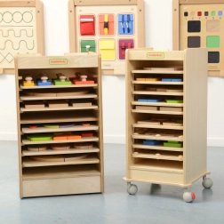 Cette armoire en bois robuste a été spécialement conçue pour le rangement clair et sécurisé des panneaux éducatifs manuels MASTERKIDZ. Grâce à sa capacité allant jusqu’à 10 unités au format 28 × 28 cm, elle garde le matériel à sa place, rationalise la préparation des activités et apprend aux enfants le sens de l’organisation.