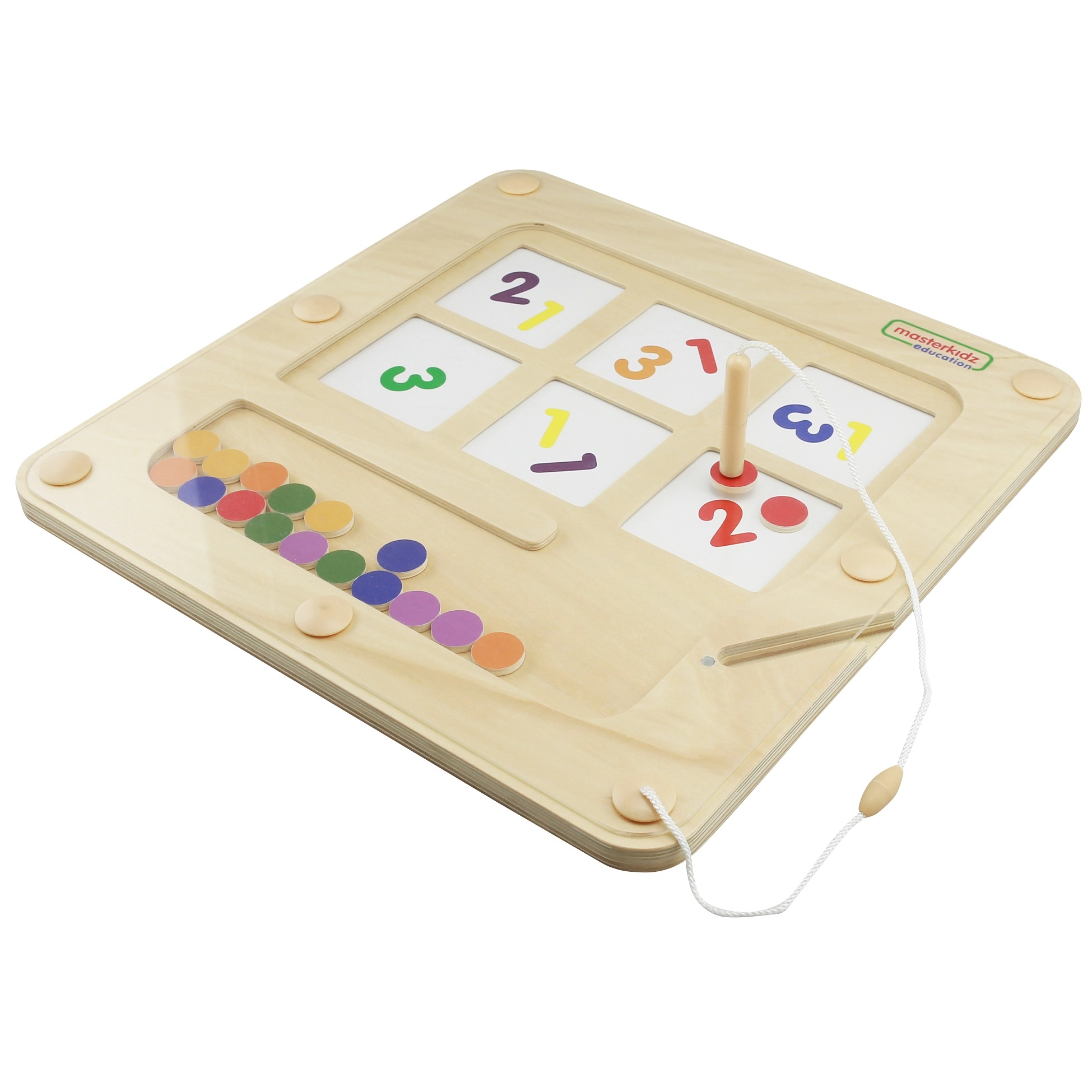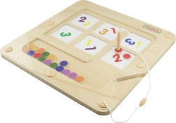 Ce tableau en bois de qualité MASTERKIDZ avec labyrinthe magnétique apprend aux enfants les chiffres, les quantités et les couleurs par le jeu naturel. À l’aide du stylo magnétique fourni, les enfants déplacent des billes/jetons vers les bonnes positions selon les chiffres et les couleurs, développant ainsi la coordination œil–main, la concentration et la patience.
