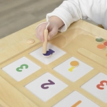 Il propose différents niveaux de tâches – de l’association simple des couleurs à des consignes numériques plus avancées, où l’enfant ne reçoit pas d’indices directs et doit utiliser sa pensée critique et logique. La construction en bois résistante et la conception fermée avec aimants garantissent un jeu sûr et propre sans perte de pièces.