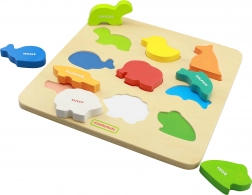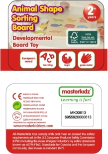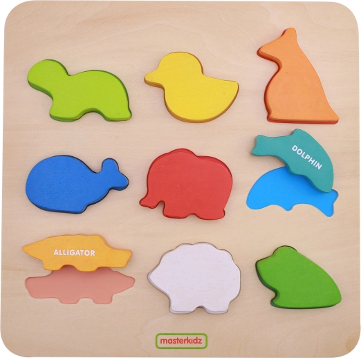 Cette planche en bois robuste propose des formes découpées dans lesquelles les enfants insèrent les animaux correspondants. Pendant le jeu, ils exercent la coordination œil–main, la concentration et la perception spatiale. Chaque pièce est clairement colorée et bien lisible, ce qui facilite l’apprentissage et renforce le plaisir de jouer.