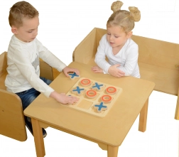 Le plateau en bois massif et les grandes pièces X et O sont résistants, stables et agréables au toucher – parfaits pour les mains des enfants.