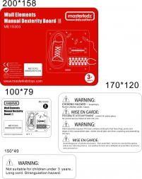 Un enfilage d’un lacet rouge à travers trois trous de diamètres différents est également inclus – plus le trou est petit, plus le défi est grand et plus la joie de la réussite est grande. Le tableau peut être utilisé dans un cadre mural dédié ou librement sur une table ou au sol, ce qui le rend adapté à la chambre d’enfant, à la maternelle ou à la salle de jeux.