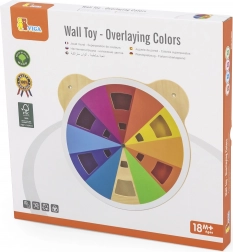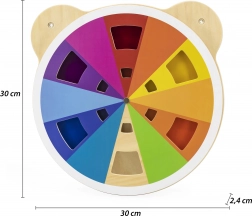 La tablette en bois avec mélange de couleurs en forme de tête d'ours est non seulement esthétiquement attrayante, mais aussi un outil éducatif pour les enfants à partir de 18 mois. En tournant le disque acrylique, les enfants peuvent mélanger les couleurs et en découvrir de nouvelles. Chaque rotation aboutit à des couleurs uniques qui fascinent les enfants.