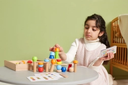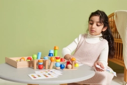 Avec ces kits de construction en bois, les enfants peuvent construire des tours incroyables selon les cartes ou leur propre imagination. Le jouet soutient l'équilibre, les compétences pratiques, l'imagination et la pensée logique.