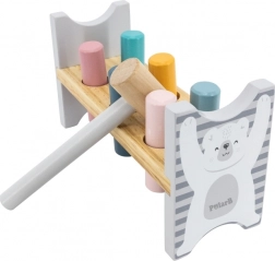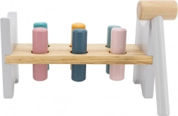 Ce banc en bois coloré de la marque VIGA est conçu pour captiver et développer la coordination des enfants. La tâche principale est de marteler les chevilles individuelles à travers les trous, ce qui amuse les enfants tout en exerçant leurs compétences motrices.