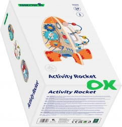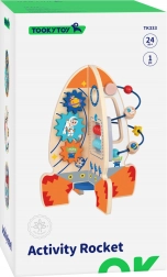 Ce set de jeu en bois de Tooky Toy est conçu pour les enfants à partir de 3 ans. Fabriqué en bois de haute qualité, il est recouvert de peintures écologiques et non toxiques. Le jouet développe particulièrement la motricité fine et la réactivité des enfants. Chaque face de la fusée propose des activités variées qui stimulent l’imagination, la logique, la mémoire et le mouvement.
