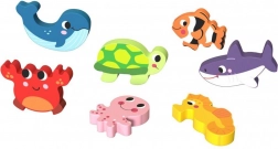 - - 7 pièces représentant des animaux sous-marins, tels qu’une baleine, un requin ou une tortue.