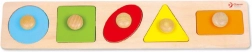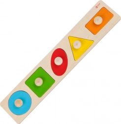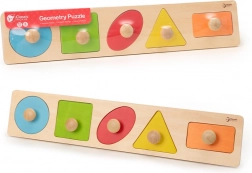Le puzzle en bois Classic World est conçu pour les enfants dès 12 mois. Ce jouet comprend un plateau avec des formes découpées et 6 pièces avec poignées qui correspondent aux formes du plateau. Toutes les pièces sont facilement saisissables grâce aux petites poignées.