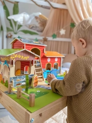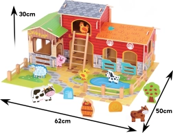 Construisez votre propre ferme à la maison ! La méga ferme en bois WOOPIE GREEN plonge les enfants dans le monde de la nature, où ils apprennent à s’occuper des animaux et à découvrir la vie quotidienne à la campagne. Des bâtiments réalistes (écurie, grange et poulailler), un étang et des figurines détaillées favorisent la narration créative et le jeu de rôle.